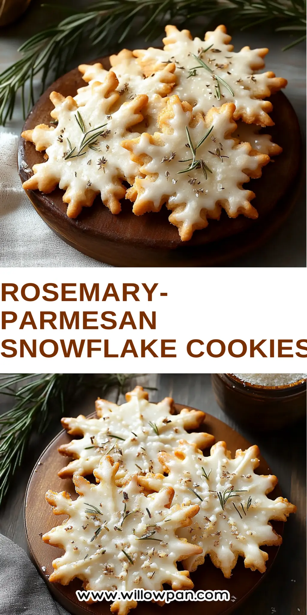 Enjoy the delicious blend of rosemary and Parmesan with these Rosemary-Parmesan Snowflake Cookies, perfect for holiday gatherings.