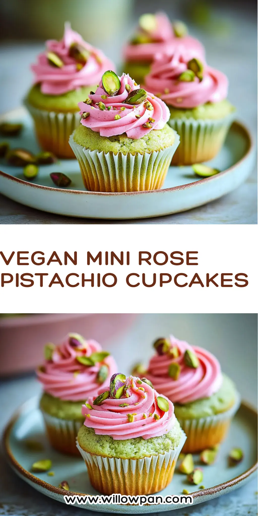 Vegan Mini Rose Pistachio Cupcakes Variations